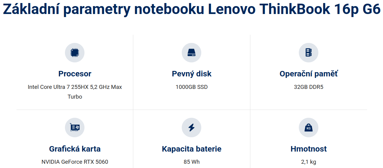 Lenovo ThinkBook 16p G6 IAX Notebook, Ultra 7 255HX, 32GB DDR5, 1TB SSD, NVIDIA GeForce RTX 5060 8GB, 16" WQXGA IPS 240Hz, W11P, šedý 21R00013CK